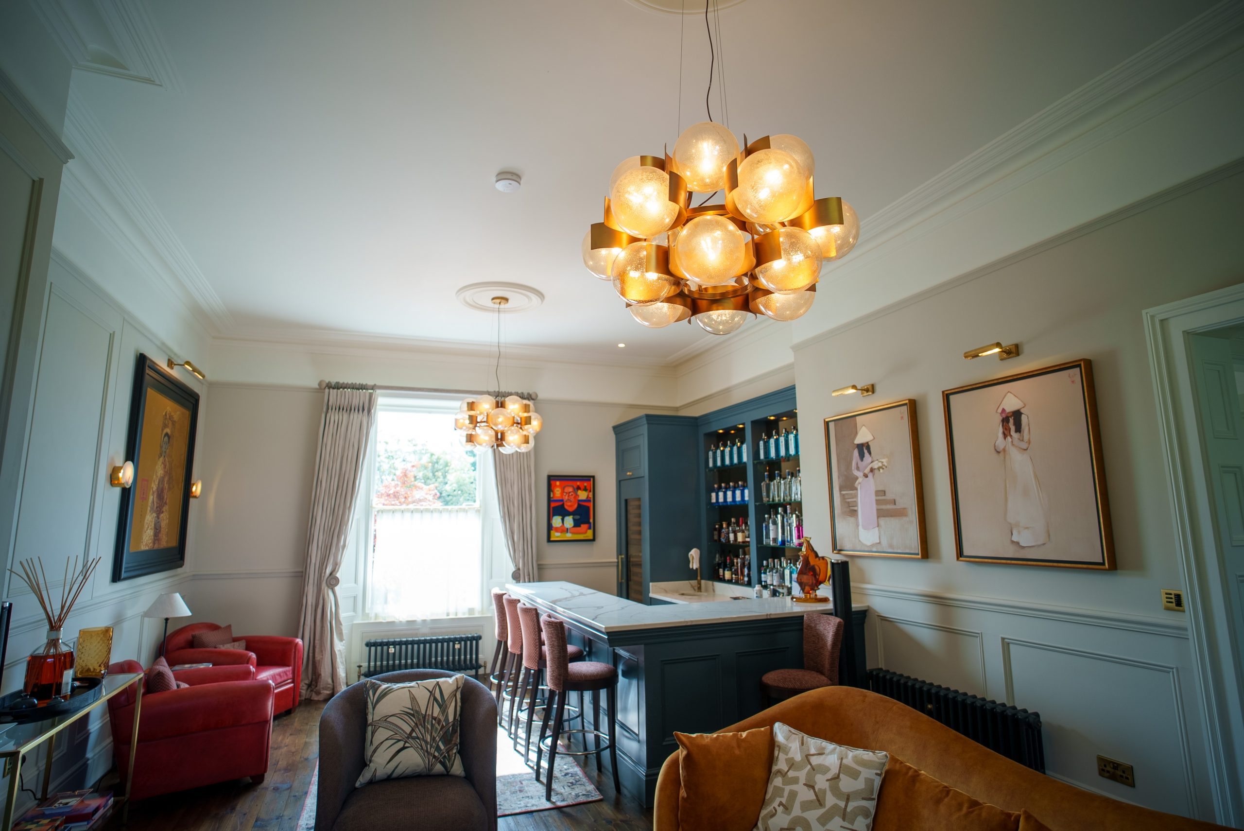 A BeoSound 2 speaker in bronze tone provides ambient music, perfectly suited to the atmosphere of the drawing room.
