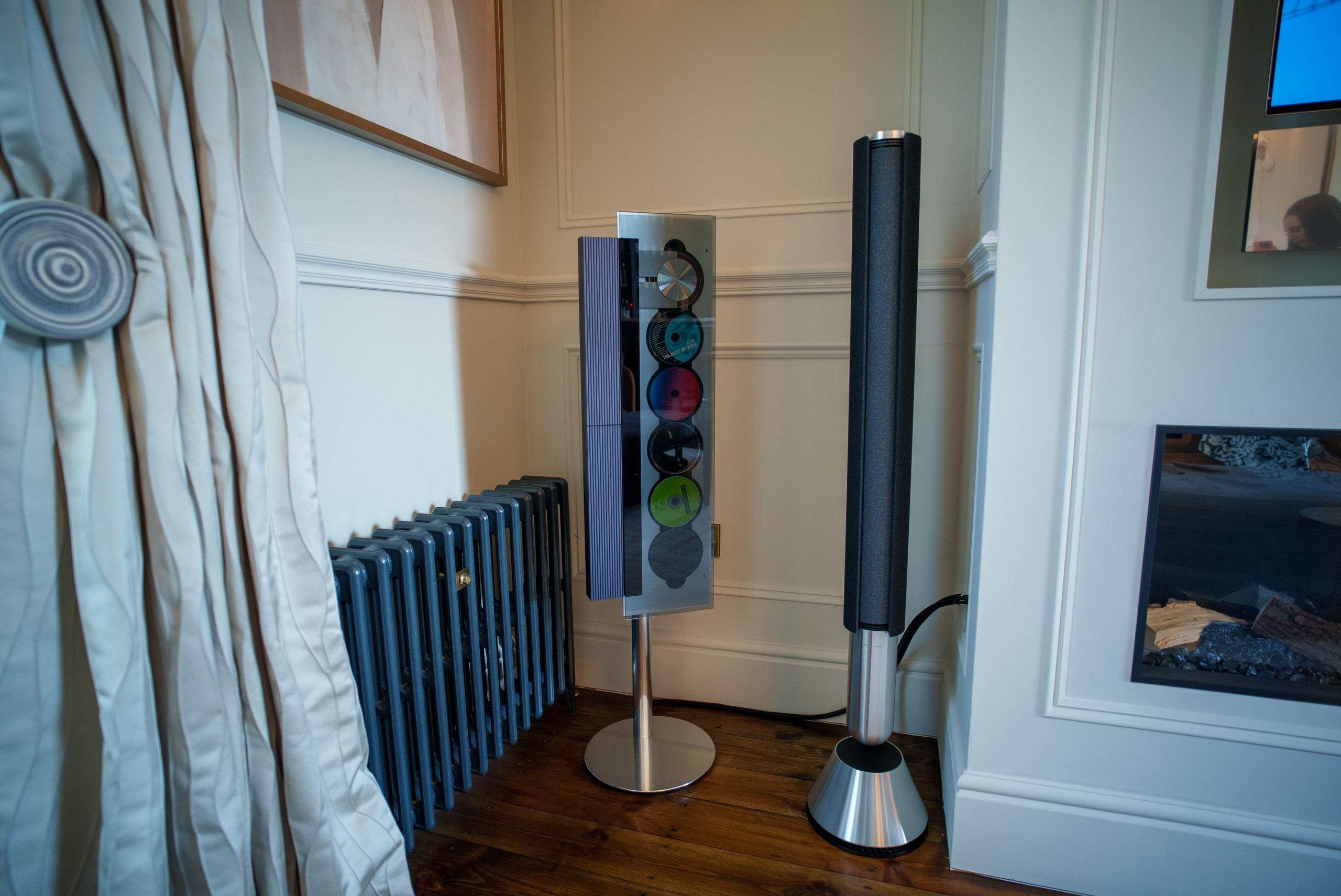 The classic BeoSound 9000 takes pride of place, known for its mesmerizing “party trick” — the clamper moves between CDs with Ferrari-like speed, going from one disc to the next in just 5.5 seconds! - Drawing Room Audio
