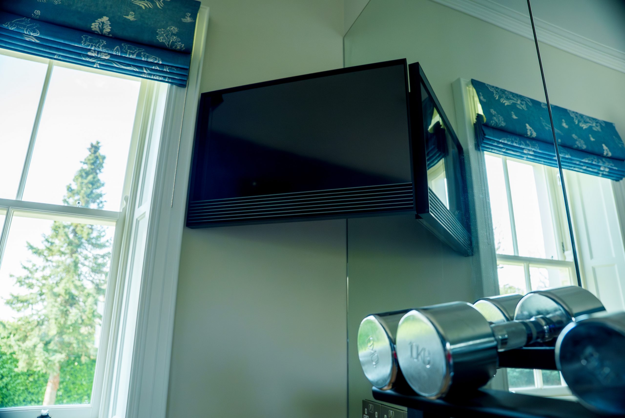 In addition to the AV setup, the home was enhanced with Lutron lighting control and Silent Gliss motorised blinds. The blinds seamlessly integrate with the Lutron system and are controlled via the same SeeTouch keypads used for lighting. All six blinds drop in perfect synchrony at the touch of a single button, blending functionality with refined elegance. - Gym Entertainment