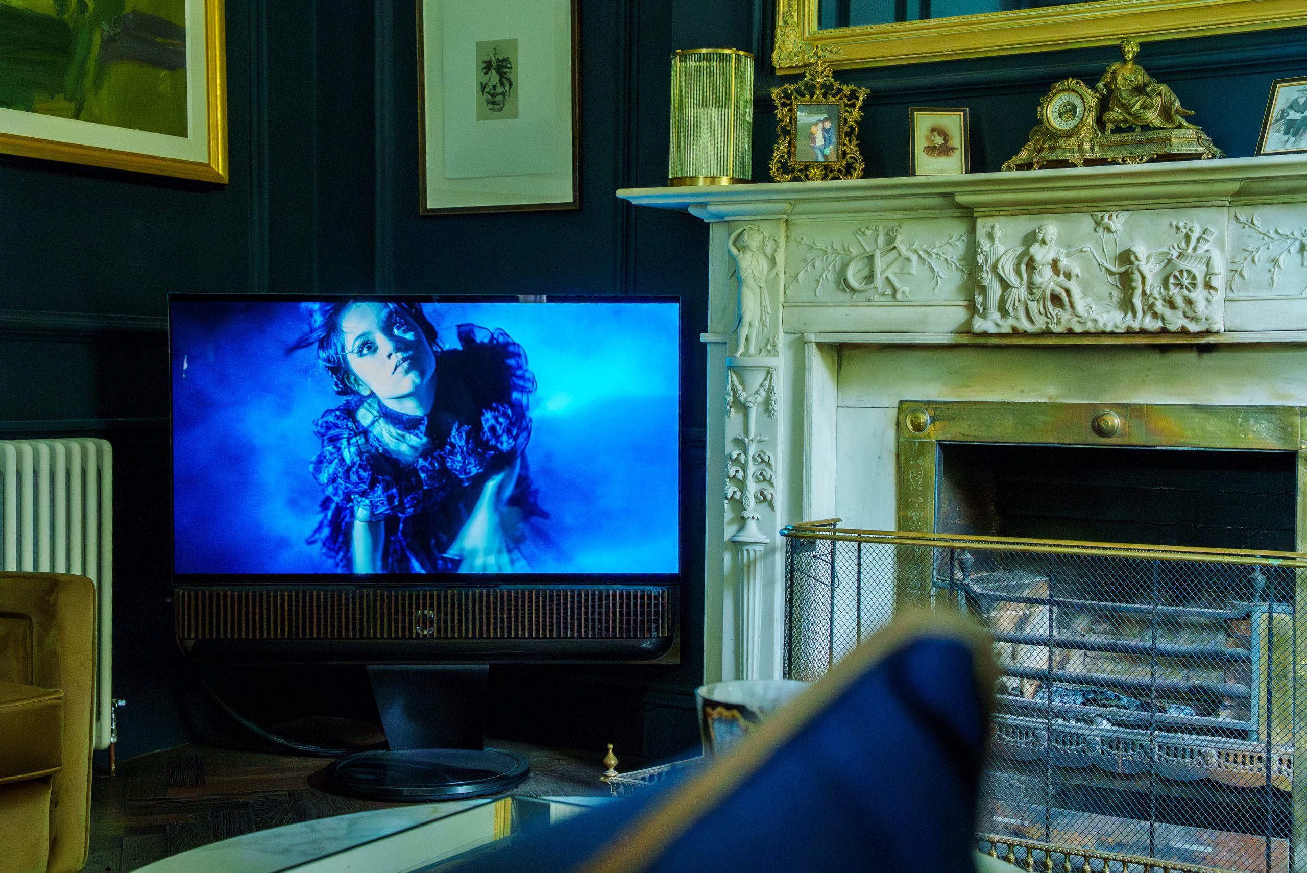- BeoSound Stage soundbar paired with an LG TV screen.
