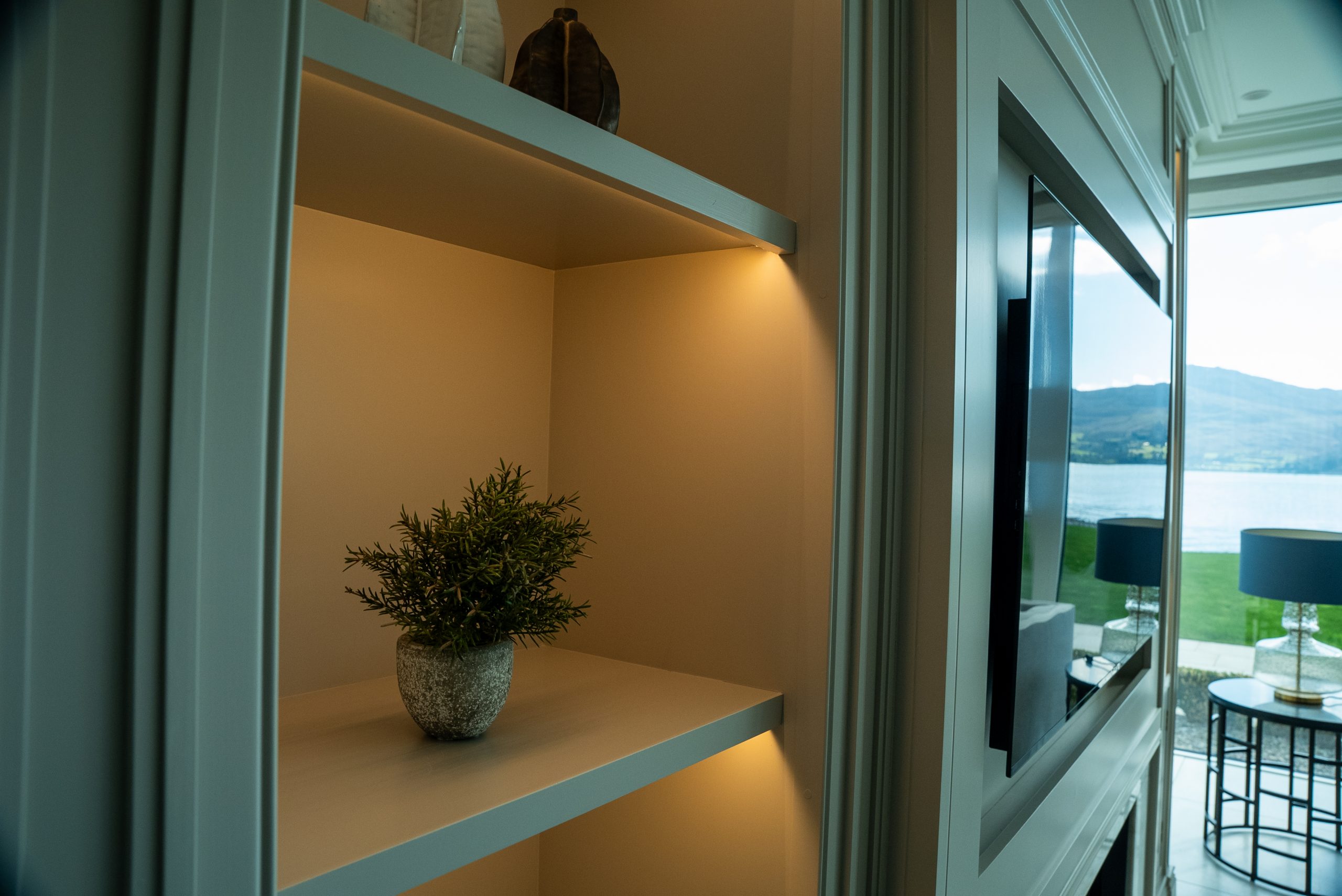 Our client’s modern home overlooks the stunning Carlingford Lough and enjoys lots of natural sunlight. The goal was to keep the interior elegant while simplifying control of lighting and blinds.