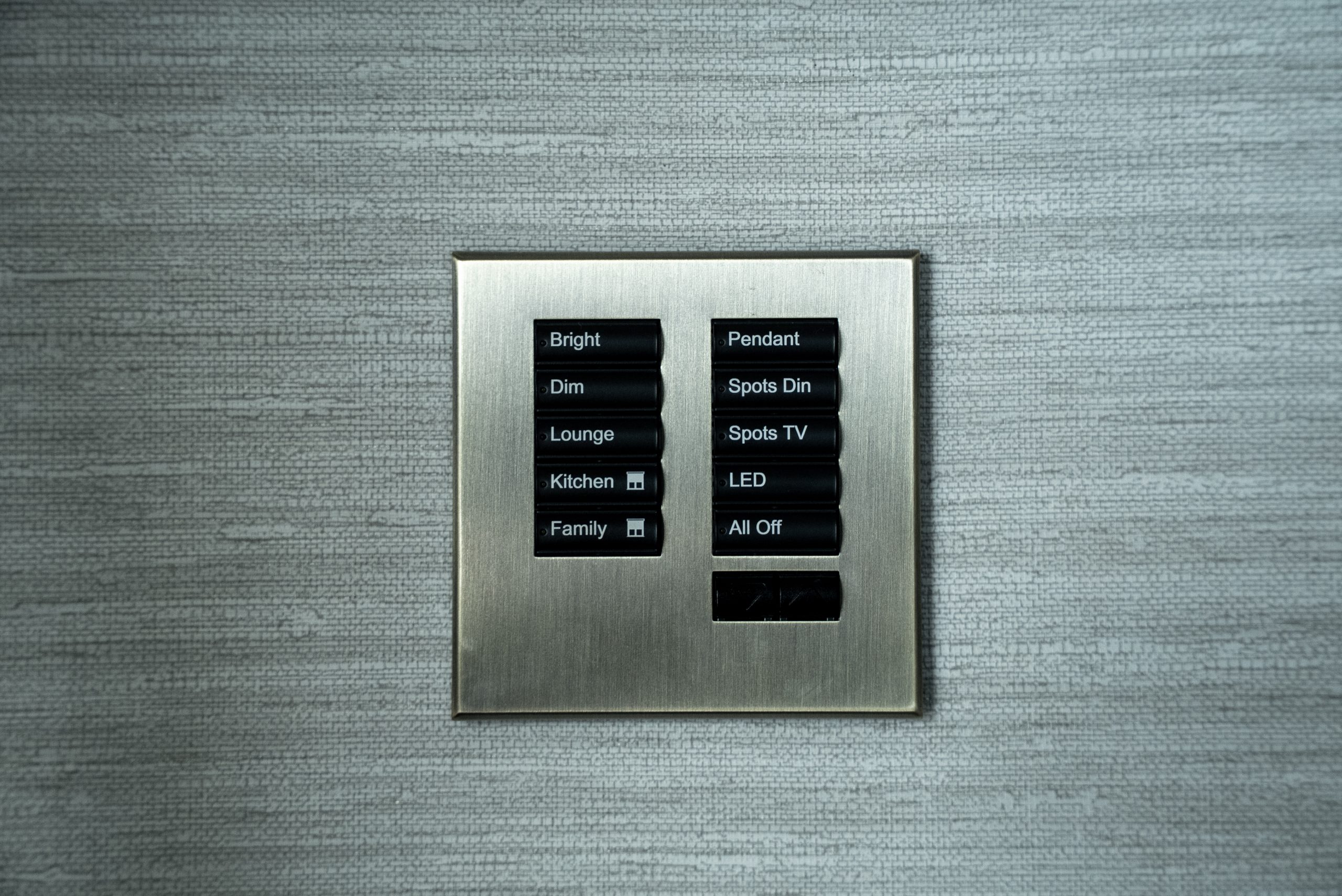 • Lutron SeeTouch keypads in a brass finish with custom labels to suit the family’s routines